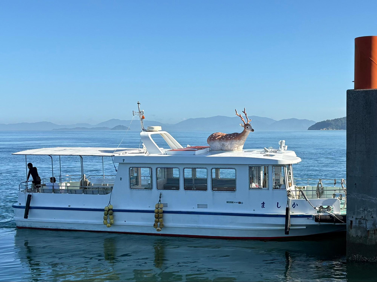 また、「鹿島」の名前の通り島には鹿(ニホンジカ)がいます。渡船には鹿のオブジェがついており、島に降り立つと可愛い鹿たちが出迎えてくれます。
