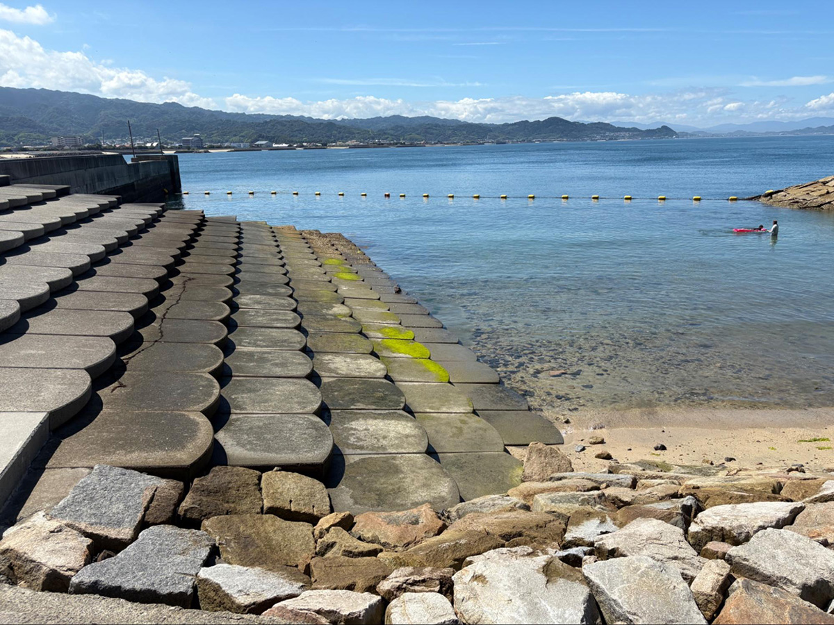 実際に江口さんが指摘したあと、この場所でイベントスタッフの方が足を滑らせて転倒し、出血する場面がありました。幸い大事には至りませんでしたが、海辺ではビーチサンダルではなく、滑りにくいマリンシューズがいかに重要かを改めて痛感させられました。